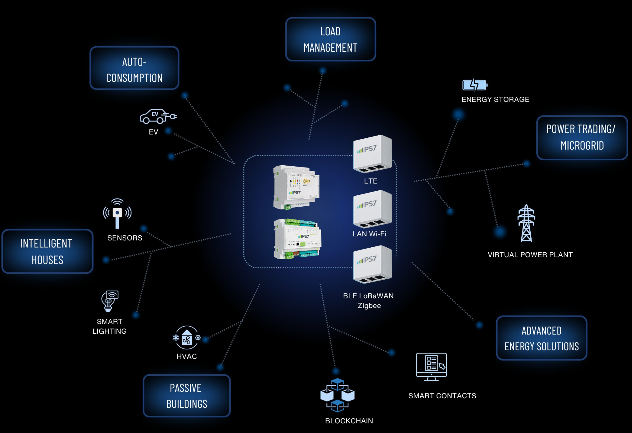 PS7.ai incorporates robust cybersecurity at the core of its architecture, designed for distributed infrastructures and energy communities.