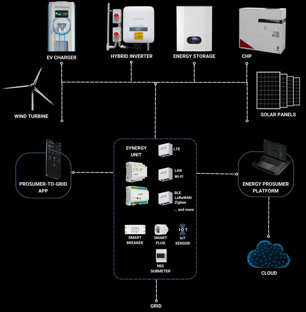 6. Hybrid Inverter & Energy Storage – Efficient energy distribution between grid, storage, and devices. Store excess energy to cut costs and reduce grid reliance. Synergy Unit ensures optimal strategies for savings.